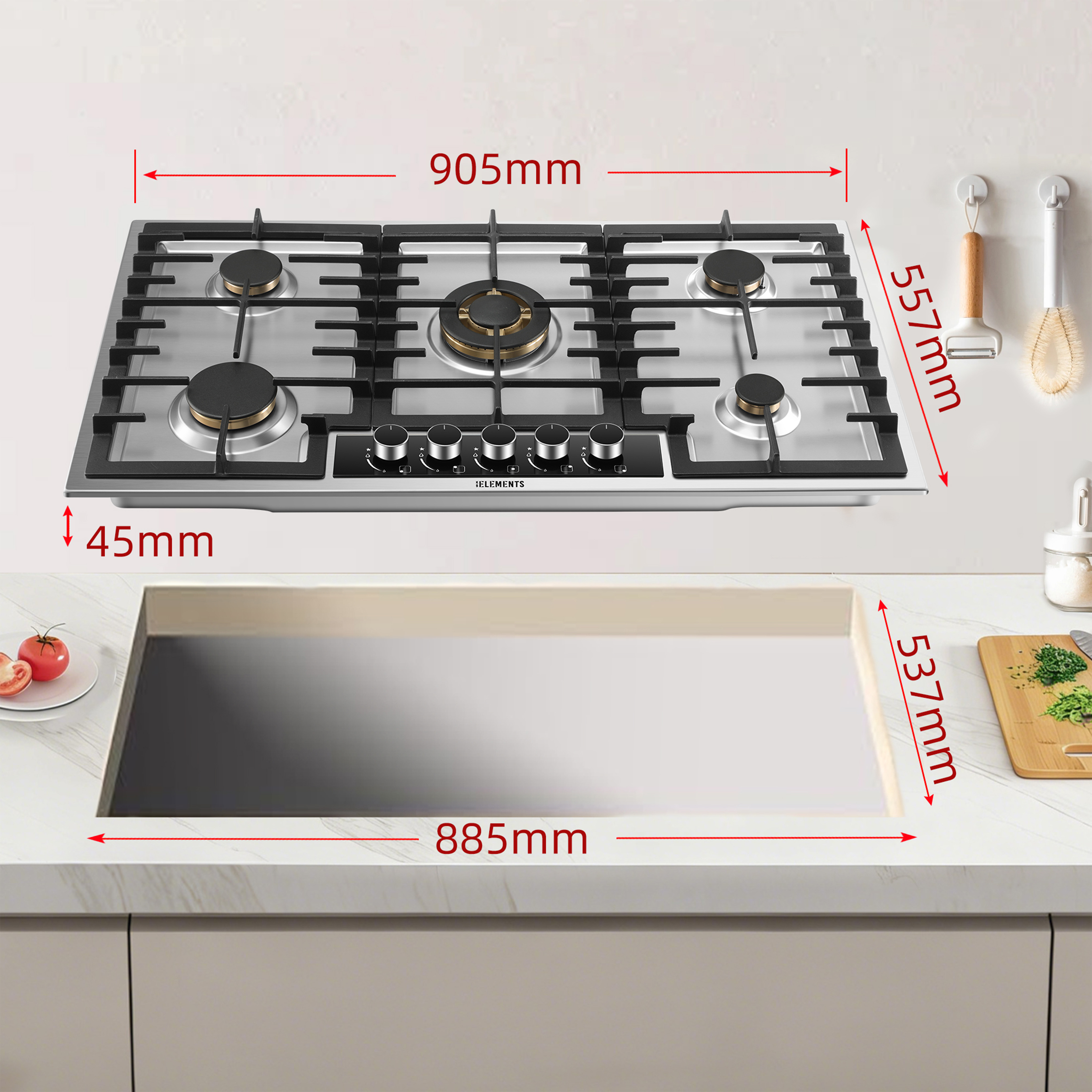 Built-in gas dimensions WxDxH: 88.5 x 53.7 x 4.5(cm)