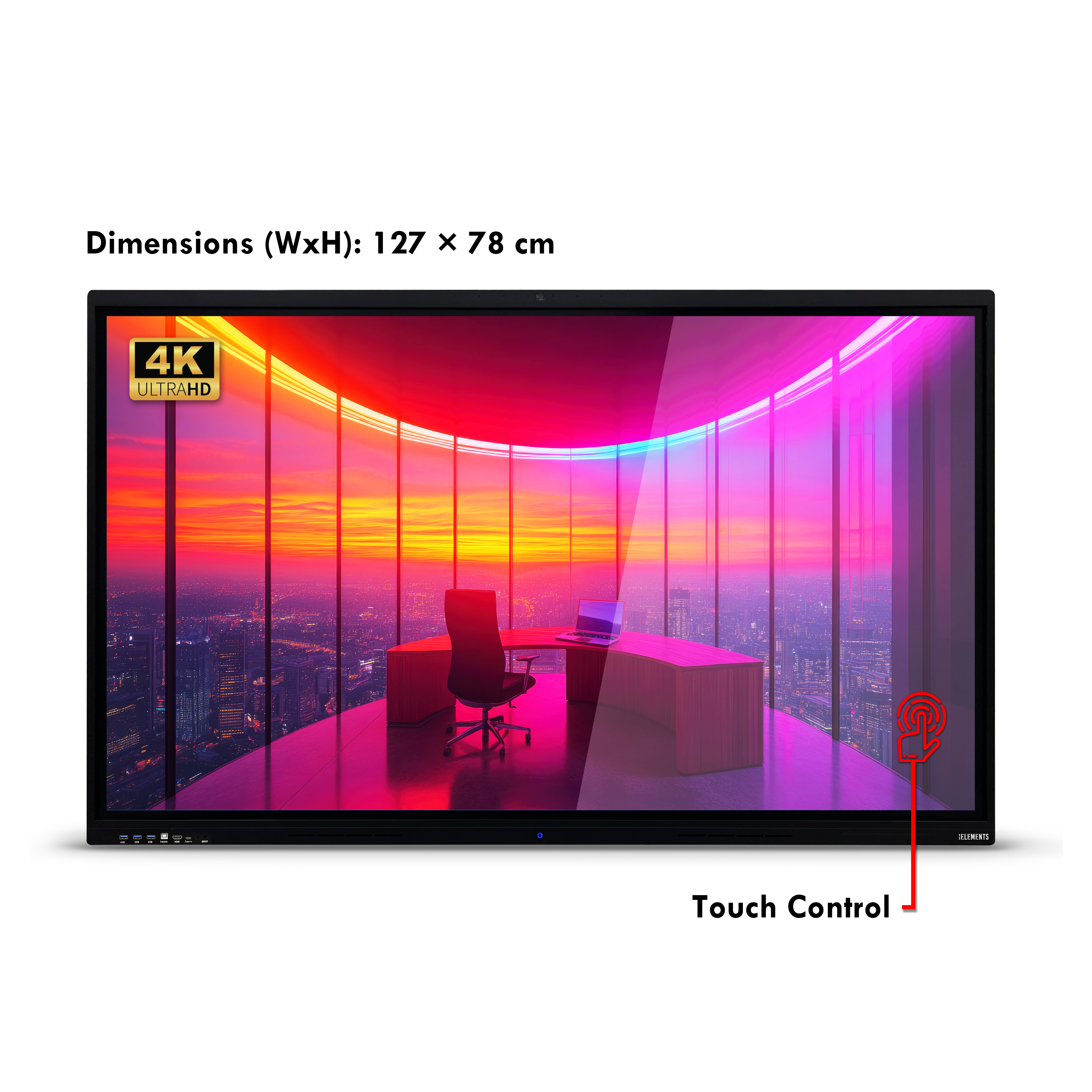 Display Size: 55' 4K UHD (3840 × 2160) IPS D-LED Panel — 350 nits Brightness