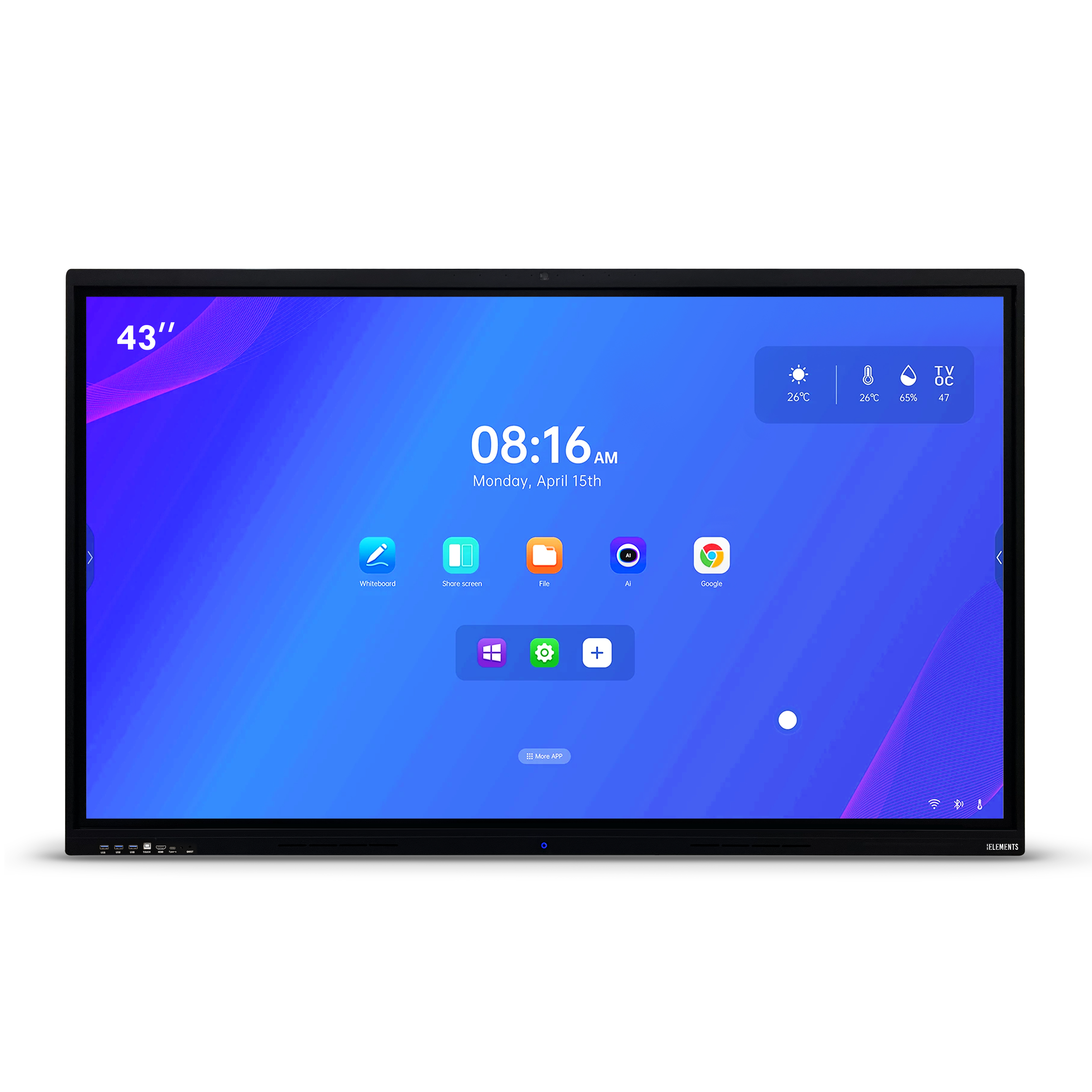 Display Size: 43' High-Clarity IPS D-LED Panel